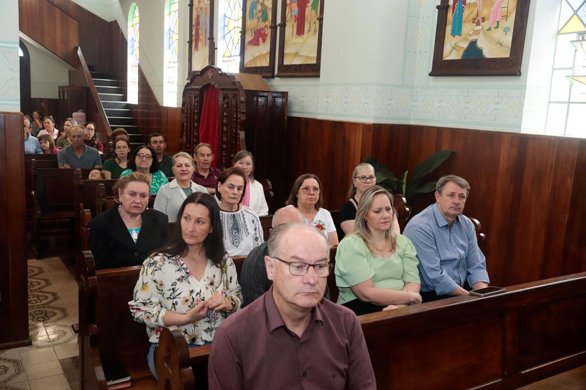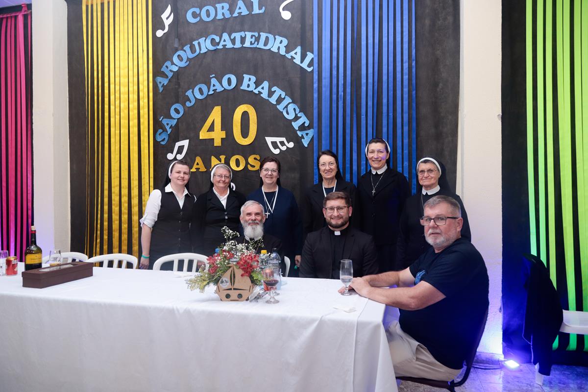 O Pe. Neomir Doopiat Gasperin destacou a importância do Coral nesses 40 anos e agradeceu a disponibilidade do Maestro e sua família em também conduzirem os trabalhos junto ao Coral da Paróquia Santíssima Trindade, na Colônia Marcelino, e também na Comunidade de São José dos Pinhais.