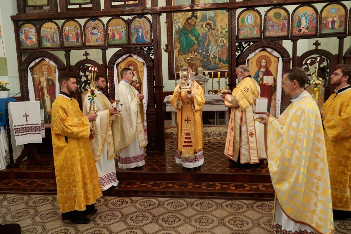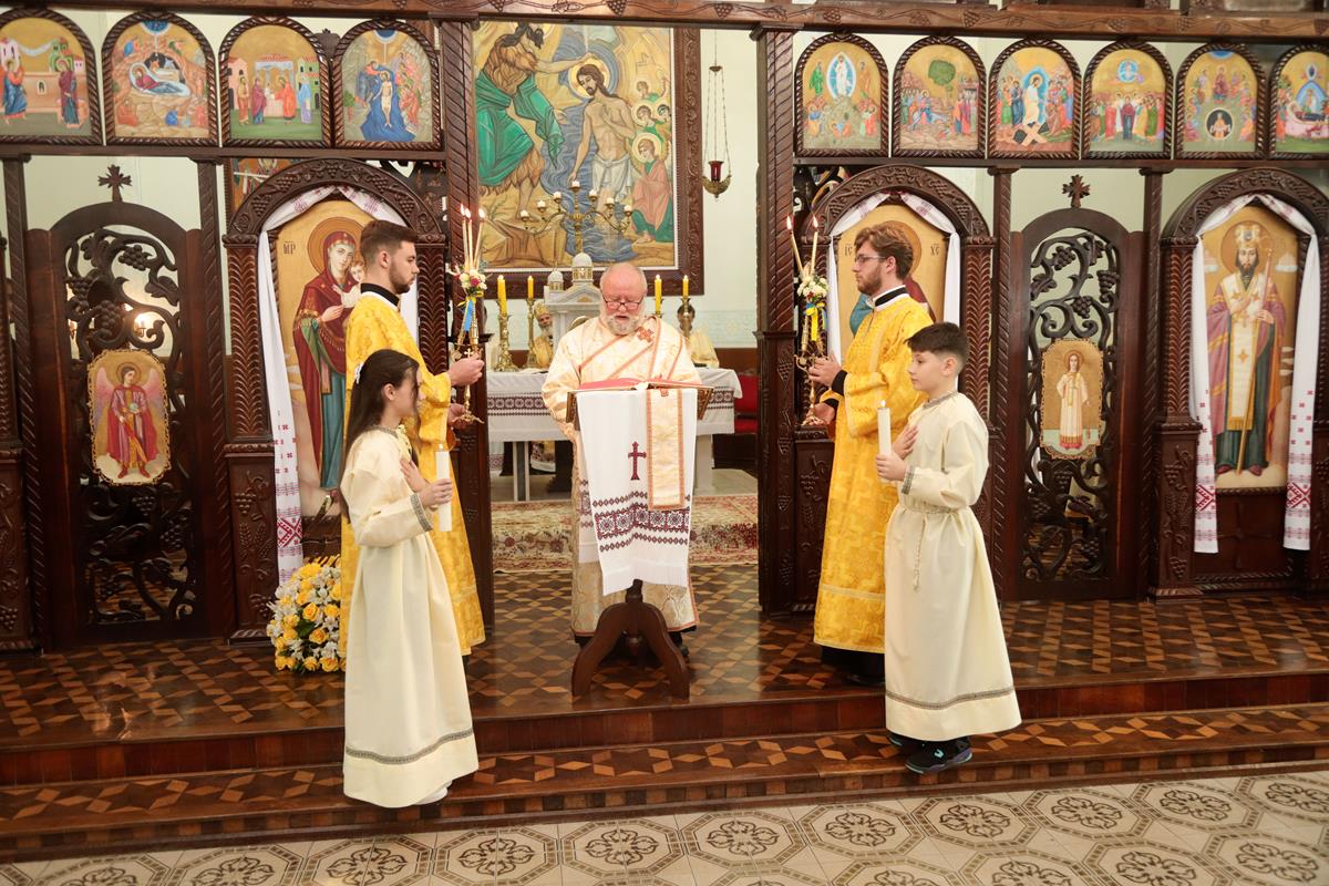 A procissão desde a sacristia e a entrada na Arquicatedral, sob o hino “Budh imia Hospodnhe”, deu início à celebração. Foram lidas as intenções da Divina Liturgia, que foi especialmente celebrada para agradecer a Deus: pelos 40 anos de história do Coral e suas realizações em prol da Igreja; pelo Maestro Leonardo Davibida e sua família por seus anos de inestimável dedicação, ensinamentos musicais, paciência e resiliência demonstrados ao longo de todo esse tempo; agradecer a todos os atuais componentes desta e de outras Paróquias e capelas, que não medem esforços para participarem dos ensaios.