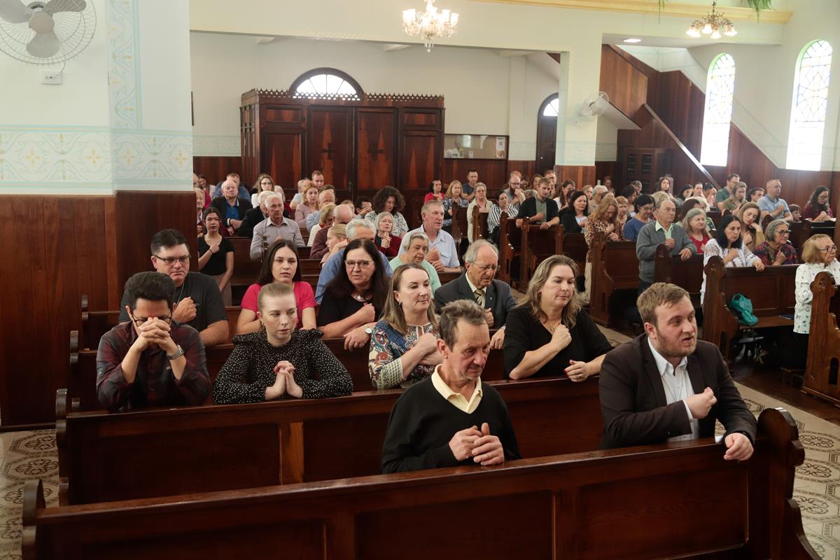 Finalmente, seguiu a homenagem ao Maestro e a todos os coralistas vinda do Conselho Administrativo Paroquial, parabenizando-os pelas quatro décadas de dedicação à Igreja e à música. Para selar este reconhecimento, foram entregues uma placa de homenagem ao Maestro e flores à sua esposa, como símbolo de gratidão. O gesto foi realizado pelos Coordenadores do Conselho Sr. Erlino Frankiw e sua esposa Sra. Cláudia Frankiw.