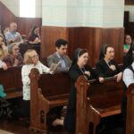 Em seguida, o coralista Marcos Nogas fez a leitura do texto sobre a história do Coral (ver abaixo). Ele destacou o grande esforço dos responsáveis, mantenedores e dos próprios coralistas em manter o coral num alto nível de compromisso artístico e paroquial, como um serviço litúrgico. Sobretudo, “a história do Coral é um testemunho da dedicação de seus membros e da liderança do Maestro Leonardo Davibida”, enfatizou Marcos. “A trajetória do Coral da Arquicatedral São João Batista é um belo exemplo de como fé, perseverança e talento podem se unir para criar algo grandioso. O grupo nasceu do desejo de enriquecer as celebrações litúrgicas e contou, desde o início, com a iniciativa e o apoio de importantes figuras da comunidade”, disse Marcos. E concluiu: “O Coral da Arquicatedral Ucraniana São João Batista é, e sempre será, um grupo que se mantém firme na fé e na sua missão, perseverando para continuar servindo a Igreja com o dom da música, renovando a cada dia o seu compromisso de louvar a Deus, pois, executar uma canção não é apenas apresentar uma letra acompanhada de uma melodia, mas são momentos preciosos de oração, louvor e meditação das palavras de Jesus Cristo”.