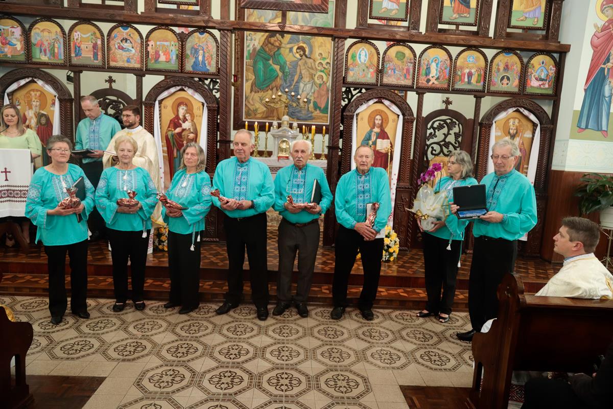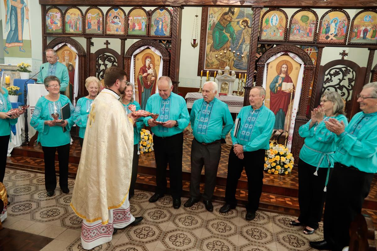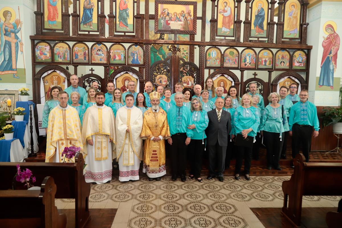 Em frente à iconóstase, o Coral entoou a canção “Boje Velykyj Iedynyj”. Seguiram-se as tradicionais fotos, que eternizaram esse importante momento e, em seguida, foi servido o almoço de confraternização no salão paroquial.