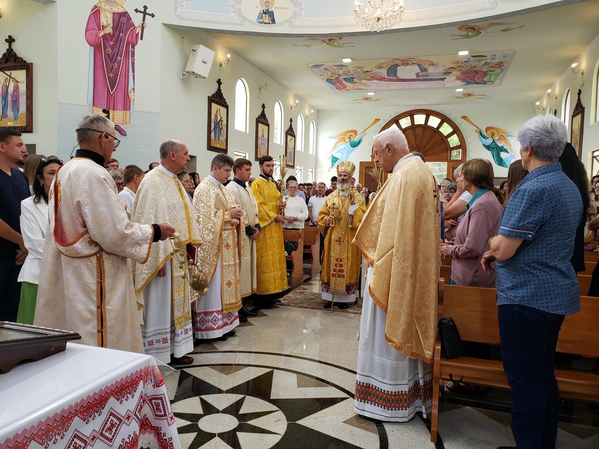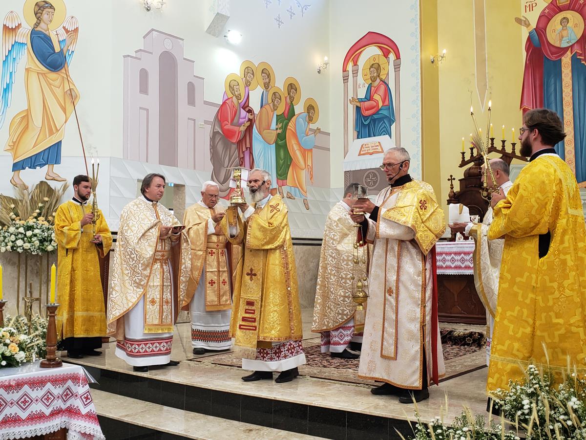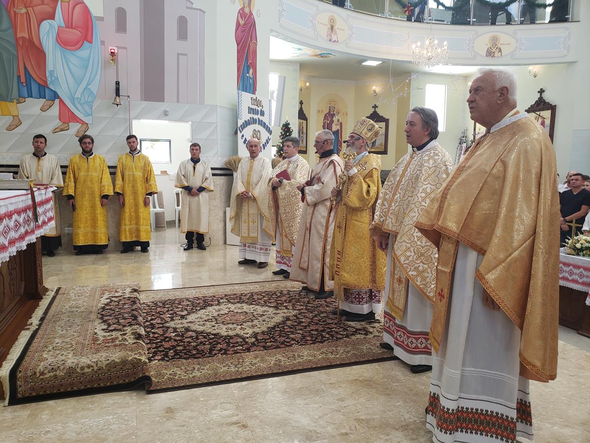 A Solene Divina Liturgia Pontifical foi presidida pelo Arcebispo Metropolita e concelebrada pelos Padres Antônio Zubek, OSBM – Superior Provincial, Pe. Teodoro Hanicz, OSBM – Diretor Acadêmico da FASBAM – Faculdade São Basílio Magno, Pe. Domingos Starepravo, OSBM – Diretor Espiritual da mesma Faculdade, Pe. Neomir Doopiat Gasperin – Pároco local. O Diácono João Basniak prestou seus serviços litúrgicos. Os Seminaristas do Seminário Maior São Josafat de Curitiba serviram como acólitos.