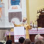 Tomando a palavra, o Pároco Neomir Doopiat Gasperin fez a acolhida de todos os presentes. Dirigindo-se especialmente ao Metropolita, ele disse: “Comemorar estes 60 anos da Festa do Trigo não é celebrar apenas 60 edições da festa, é celebrar rendendo graças a Deus por estas festas serem símbolo de união, de fraternidade, de serviço e sinodalidade. Graças a Deus, somos uma Paróquia sinodal, onde o povo caminha, reza e trabalha unido”. O Pároco Neomir relatou que a preparação da festa foi muito trabalhosa e trouxe preocupação e até dores de cabeça, mas tudo aconteceu em clima de união e alegria. Sendo uma expressão viva da sinodalidade que a Igreja pede, o evento reuniu o pessoal da Matriz e todas as comunidades pertencentes à Paróquia.