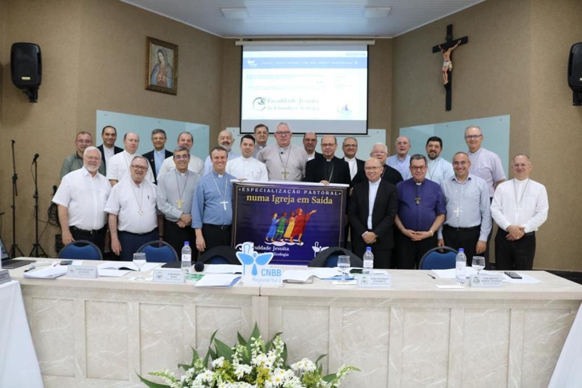 Na sequência, os bispos receberam a participação do padre Wesley Almeida dos Santos, que apresentou o novo curso de especialização em Teologia Pastoral numa Igreja em Saída, uma iniciativa do Regional Sul 2 em parceria com a Faculdade Jesuíta de Filosofia e Teologia (FAJE), de Belo Horizonte. O curso terá início em 2026 e será aberto a padres, religiosos, religiosas e leigos, sempre mediante indicação do bispo diocesano. “Queremos, com este curso, favorecer ainda mais as estruturas participativas. Vamos juntos nos unir neste trabalho e motivar tantos que contribuem para a nossa caminhada de ação evangelizadora, para que, fazendo um processo de aprofundamento especializado, possam contribuir em nossas dioceses, paróquias e comunidades”, destacou padre Wesley.