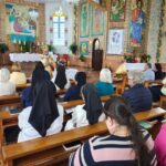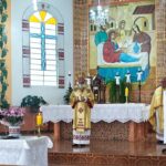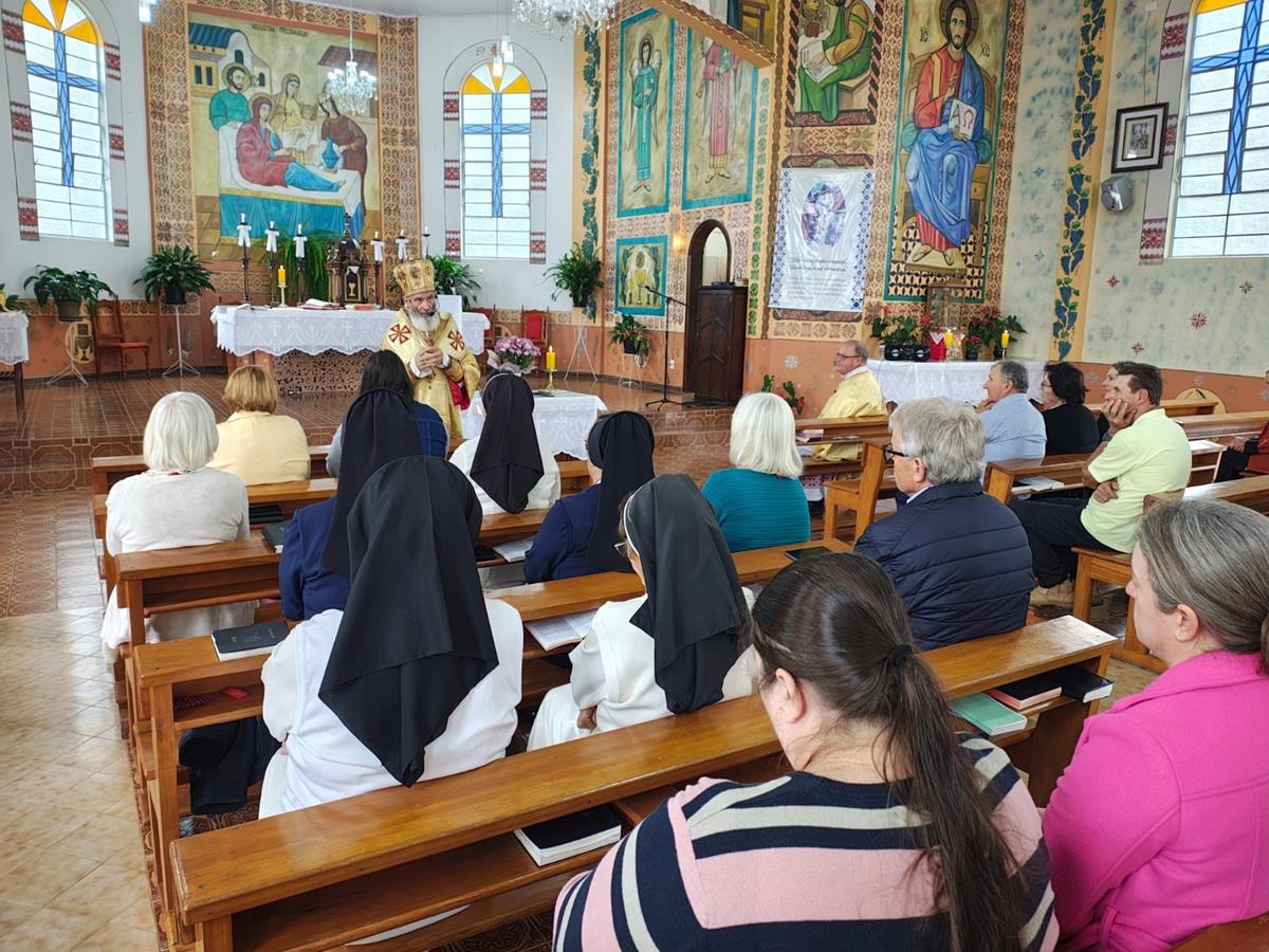 Às 08h30, houve a celebração da Divina Liturgia, presidida pelo Metropolita e concelebrada pelo Pároco e Vigário Paroquial. Em sua homilia, ele falou sobre a sinodalidade, enfatizando que é necessário fazer esforços para sermos mais sinodais, com mais diálogo e escuta, ouvindo mais, sendo mais atenciosos e também mais virtuosos. Ao término da Divina Liturgia, foi feita a foto oficial.