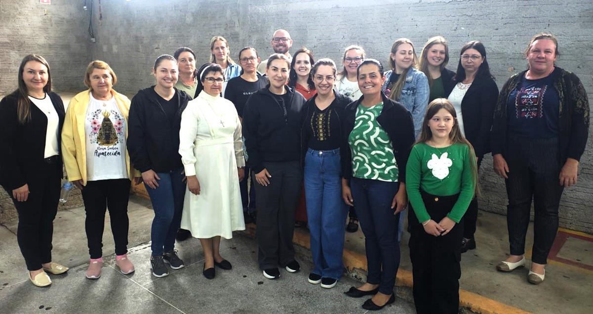 Após o almoço, às 13h30, deu-se continuidade à Assembleia com estudo em grupos. Primeiramente, o Pároco falou sobre alguns aspectos da Paróquia Sinodal. As Irmãs presentes falaram sobre a sinodalidade na Pastoral da Catequese e nos Movimentos eclesiais, como o Apostolado da Oração e o Movimento Eucarístico Jovem (MEJ).
