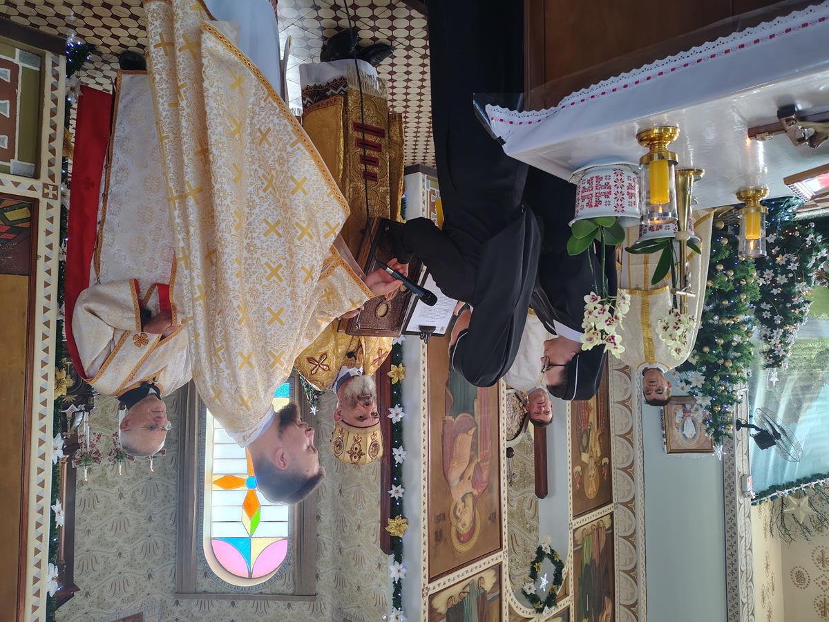 Após os “tropários”, foi realizado o rito da oficialização da instalação das Irmãs de São José na Paróquia de Dorizon. Primeiramente, o Chanceler Pe. Samoel fez a leitura do Decreto do Arcebispo Metropolita, que, tendo considerado completo o cumprimento das condições necessárias para a permanência e missão pastoral das religiosas, emitiu o documento; e ainda augurou para que as mesmas normas sejam sempre respeitadas: “A missão, o trabalho pastoral das religiosas, sua manutenção e sua permanência na localidade sejam pautadas fielmente pelas normas canônicas previstas no CCEO, nas Constituições da Congregação e também pelas leis civis vigentes no país e pelo acordo Brasil-Santa Sé” (№ 2025-412, 21 de dezembro de 2025).