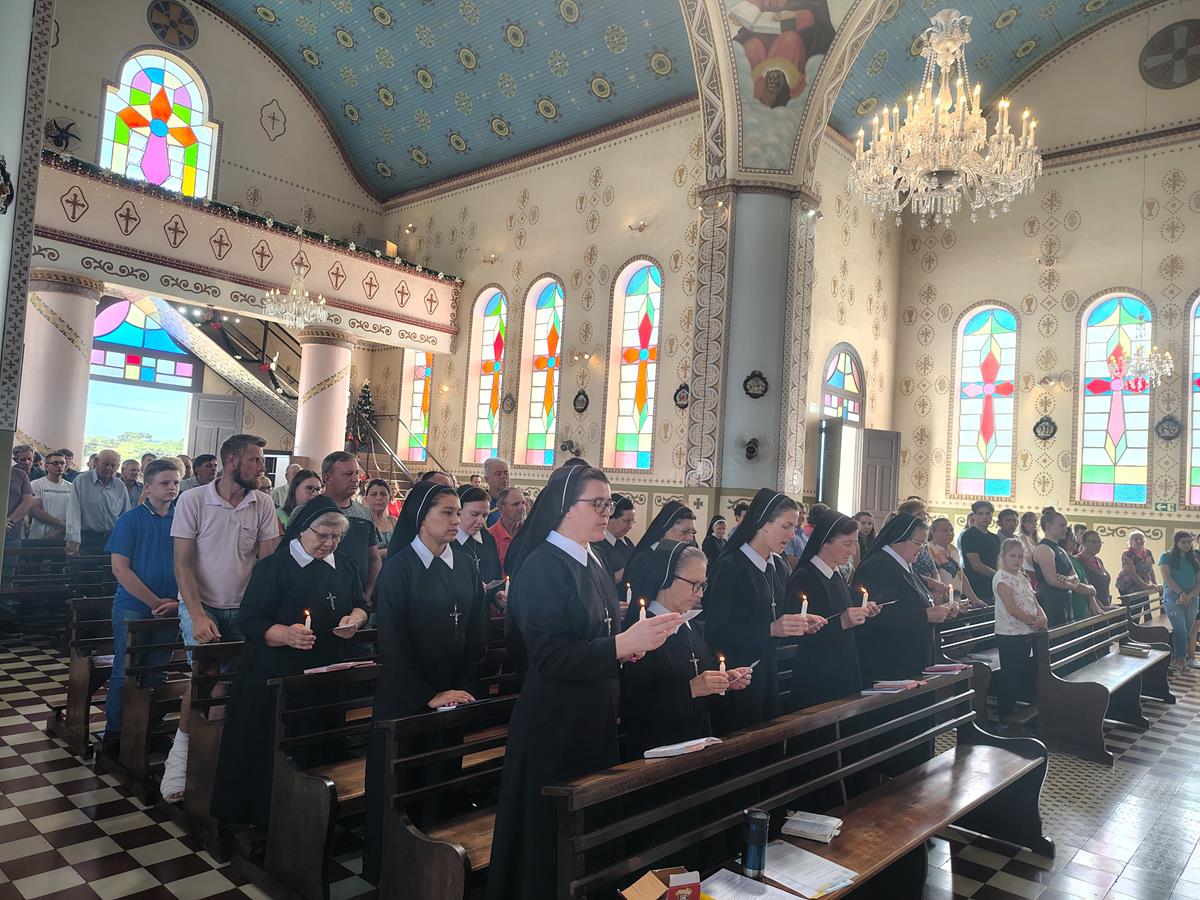 A celebração começou às 9 horas, na igreja Matriz São José, com as boas-vindas do Pároco de Dorizon Pe. Michael Barbusa e anúncio da programação celebrativa e com a mensagem da Superiora Provincial da Congregação das Irmãs de São José Ir. Marta Anatólia Marinhak, ISJ. Ela falou um pouco sobre a identidade e missão de sua Congregação, que se inspira em seu Padroeiro São José, “homem justo e fiel, escolhido por Deus para ser guardião da Sagrada Família, colaborador silencioso do seu plano de salvação e modelo de obediência, confiança e amor vivido no cotidiano”. Com alegria, Ir. Marta anunciou: as Irmãs “foram enviadas a esta Paróquia para servir, acompanhar e caminhar junto ao povo de Deus” e farão a renovação dos votos, “reafirmando, com liberdade e amor a total consagração de suas vidas ao seguimento de Cristo”.