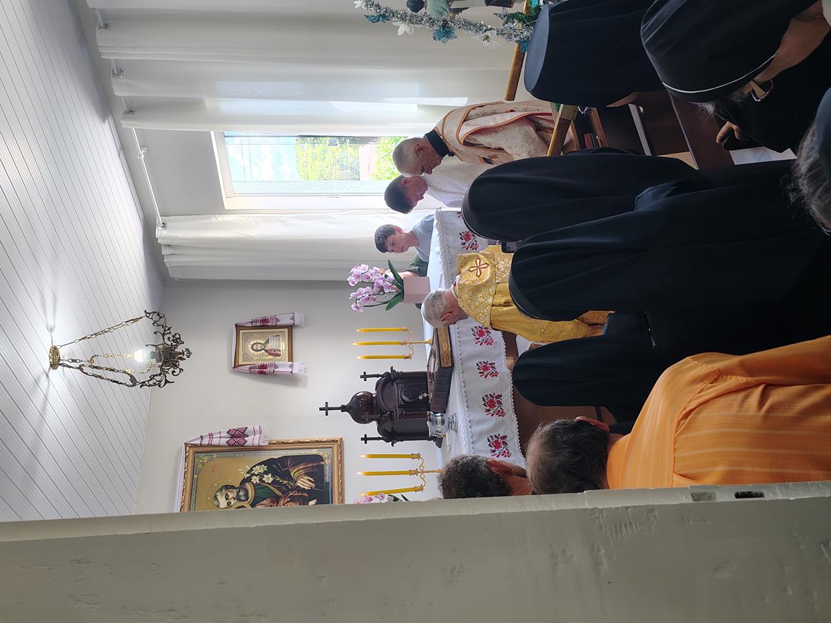 Após a Oração inicial, o Metropolita ungiu com o santo óleo os quatro ângulos do altar, e, em seguida, os quatro cantos da casa, enquanto as Irmãs е os presentes cantavam o “tropário” a São José. Seguiu a oração da bênção do sacrário e a oração diante do altar, durante a qual todos os presentes na capela permaneceram de joelhos.
