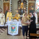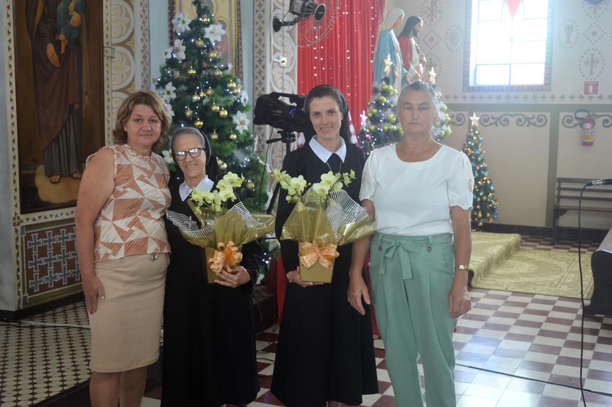 Encerrando a celebração, recebendo um buquê de flores, a Sra. Maria Marta Jurczyszyn foi homenageada pela Congregação por ter acolhido por algum tempo em sua casa as Irmãs Marina Litvin e Eleutéria Karolus. Estas, designadas pela Congregação, também receberam buquês de flores por estarem iniciando a missão na Paróquia São José de Dorizon.