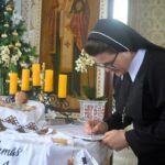 Ao término da Divina Liturgia, o Pe. Michael fez os agradecimentos e anúncios paroquiais e ainda explicou aos fiéis sobre a procissão com a imagem do Padroeiro São José. Assim, na terceira volta, cantando canções natalinas ucranianas, o povo se dirigiu com a imagem do Padroeiro até a capela da casa das irmãs, onde ocorreu a celebração da bênção do convento.