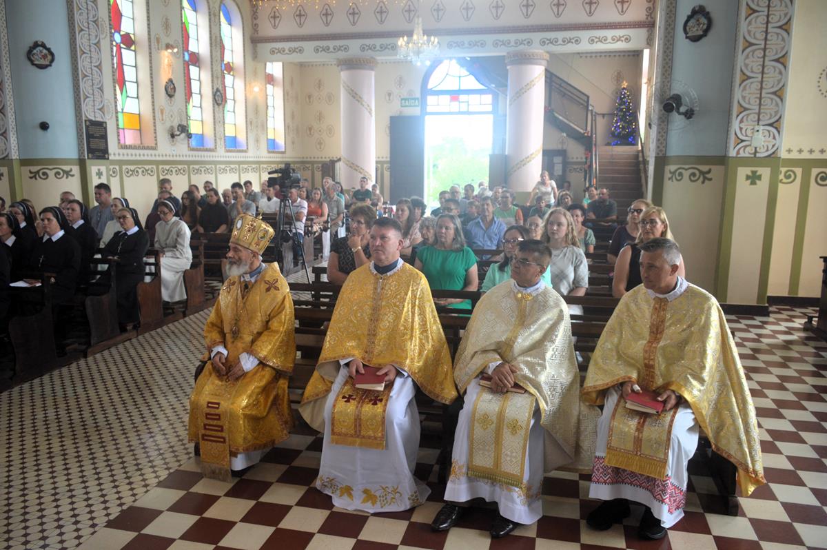 Adentrando a igreja, foram lidas as intenções e deu-se início à Divina Liturgia, presidida pelo Metropolita e concelebrada pelo Pe. João Karpovicz Sobrinho, OSBM – Pároco de Mafra, Pe. Michael Barbusa – Pároco local, Pe. Joaquim Sedorowicz – Vigário Geral da Metropolia e Pároco em União da Vitória, Pe. Samoel Hupolo – Chanceler da Metropolia e Pároco da Paróquia no Pinheirinho, Curitiba. O Diácono João Basniak prestou seus serviços litúrgicos.