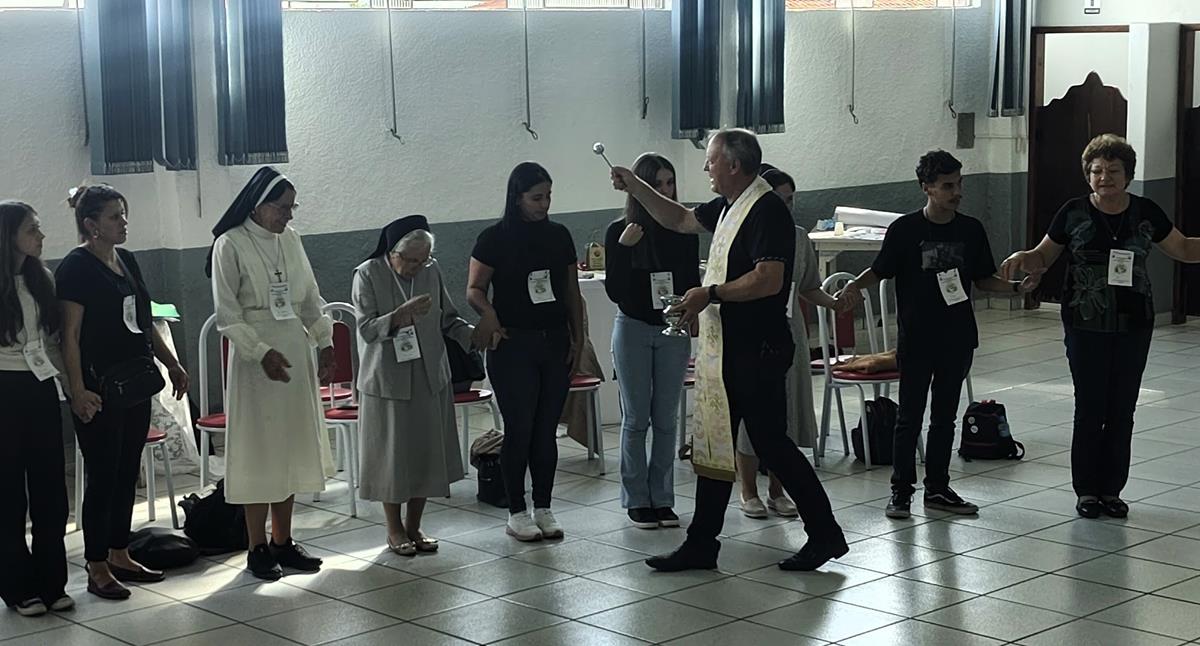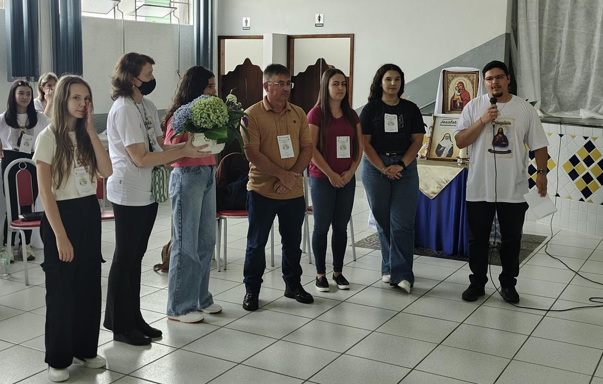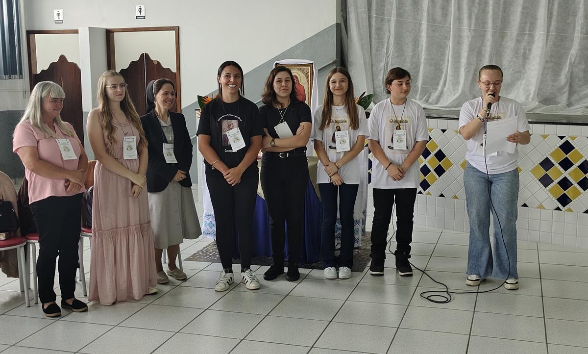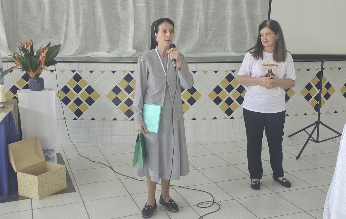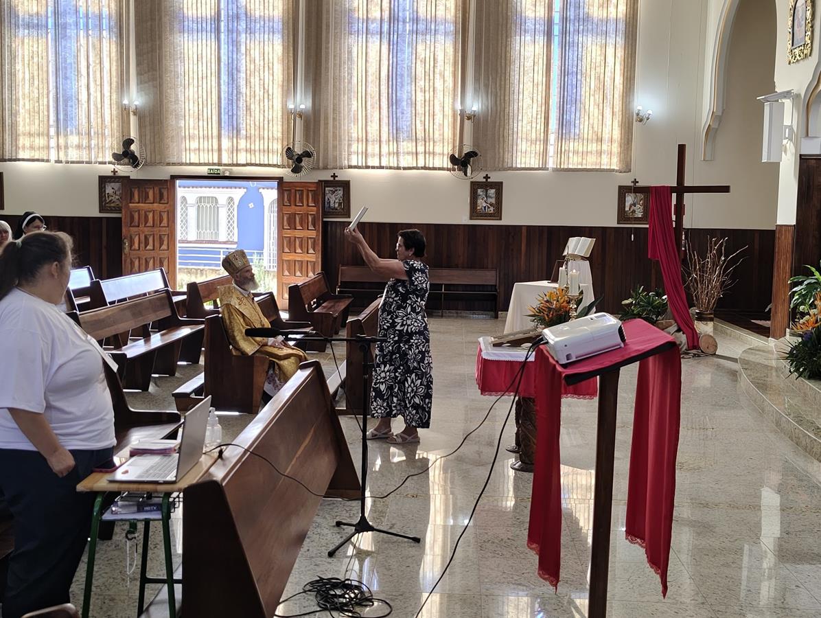 A Coordenadora Vera Lucia Vinharski, ICSCJ também acolheu os participantes e realizou a leitura da introdução da Divina Liturgia. Em seguida, algumas catequistas entraram com símbolos fundamentais para a catequese, expressando visivelmente a beleza e a responsabilidade da missão que exercem.