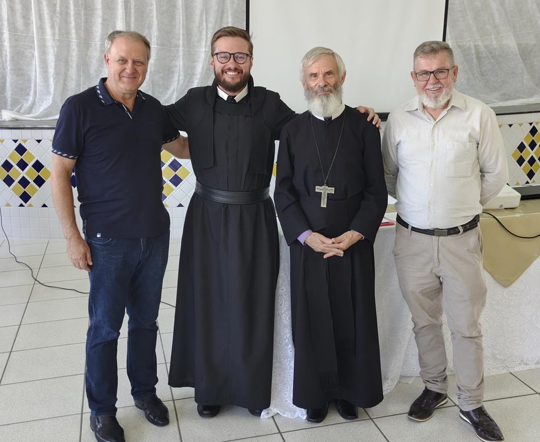 Após a celebração, as atividades formativas tiveram início no salão paroquial. A primeira palestra foi conduzida pelo Ir. Marco Antônio Pensak, OSBM com o tema “Catequista: chamado a testemunhar e promover vocações”, sob o lema “Chamados por amor, enviados a servir”. Fundamentando sua reflexão na Sagrada Escritura, o palestrante destacou o significado do “Eis-me aqui” como resposta generosa ao chamado de Deus e expressão concreta da vocação cristã. Enfatizou o papel da catequese no fortalecimento da fé e na promoção das vocações, especialmente no ambiente familiar, onde nascem e se desenvolvem os primeiros sinais do chamado divino. Ele abordou ainda o tempo da Quaresma como oportunidade privilegiada de conversão e renovação espiritual, recordando os passos para uma boa confissão e incentivando as catequistas a refletirem profundamente sobre sua própria missão.