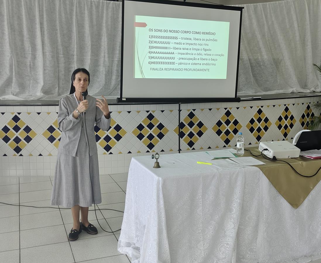 Em seguida, a Ir. Dorilde Chiarentin, SMI ministrou uma palestra voltada à promoção da saúde mental, abordando práticas de cuidado pessoal e reflexões sobre os desafios enfrentados pelas famílias e pelas crianças. Ressaltou a importância de integrar fé e cuidado humano na ação catequética, lembrando que o catequista precisa estar atento às atitudes e às necessidades dos catequizandos.