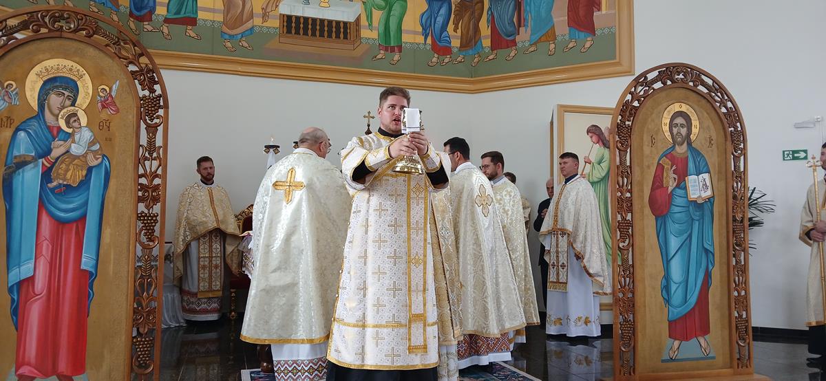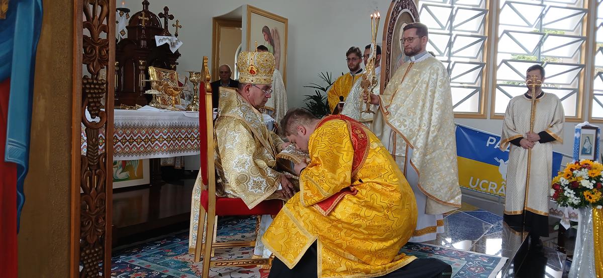 Terminada a introdução, teve início a Divina Liturgia, celebrada pelo Bispo Eparca e concelebrada pelos Padres Sérgio Schmil – Pároco de Cascavel; Edson Ternoski – Reitor do Seminário Maior São Josafat e Pároco da Arquicatedral São João Batista em Curitiba; José Claudio Melnik – Pároco da Catedral Imaculada Conceição em Prudentópolis; Joaquim Sedorowicz – Pároco da Paróquia São Basílio Magno em União da Vitória; Sandro Dobkowski – Pároco da Paróquia Nossa Senhora do Perpétuo Socorro em Pato Branco; Thiago Paulo Protexe – Pároco da Paróquia São José em Cantagalo; Domingos Starepravo, OSBM – Diretor espiritual do Seminário Maior; Iwan Kerneski – Vigário Paroquial da Arquicatedral e da Paróquia Santíssima Trindade na Colônia Marcelino em São José dos Pinhais; e Samoel Hupolo – Pároco da Paróquia Sant’Ana no bairro Pinheirinho em Curitiba, que prestou os serviços diaconais.